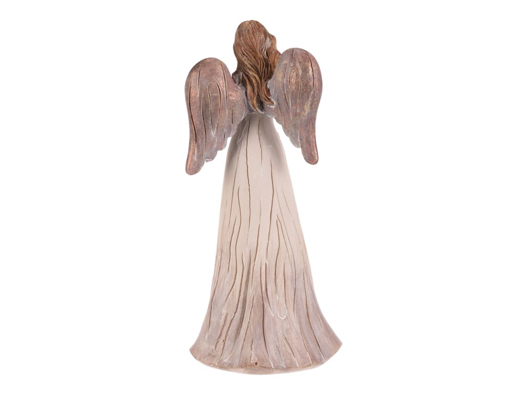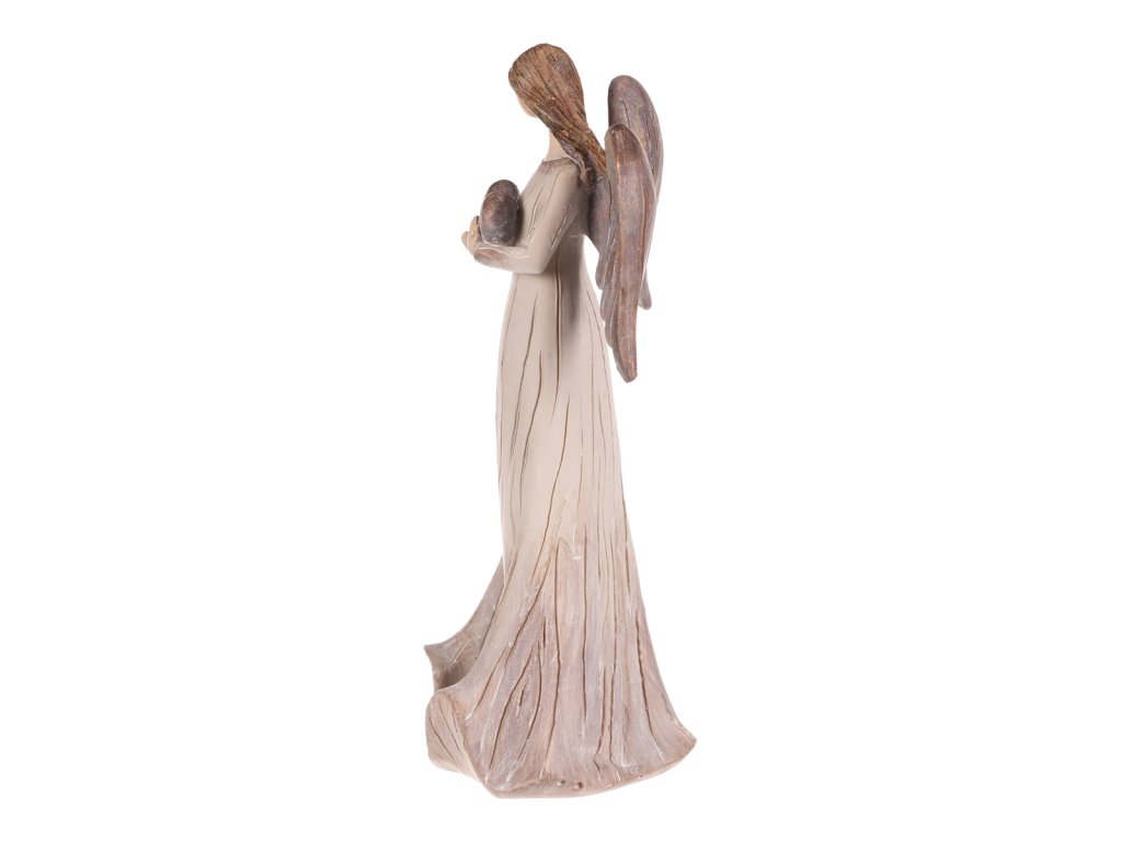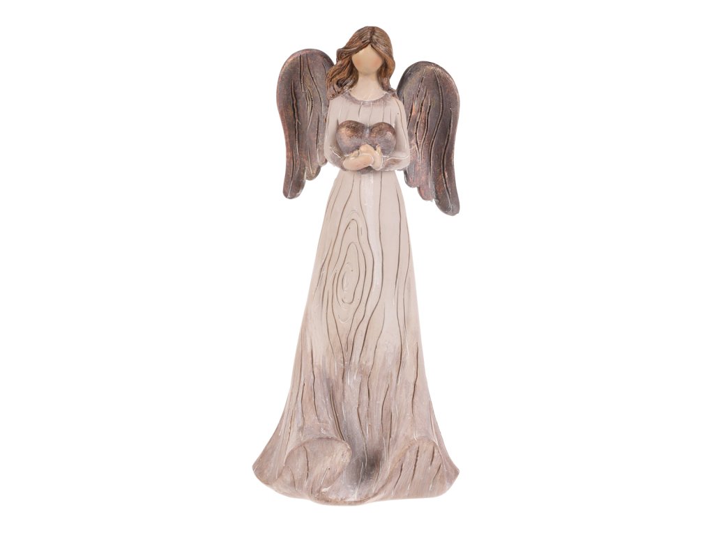 Jemná figurka anděla se srdcem v dlaních vnese do vašeho domova klid a pohodu. Je symbolem lásky a ochrany, přičemž béžovo-měděné tóny dodávají sošce elegantní vzhled, který krásně zapadne do vánoční výzdoby. Silueta dívky působí něžně a harmonicky.