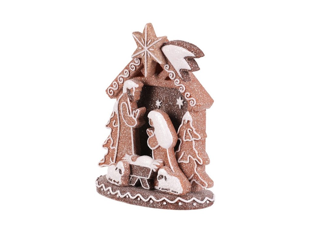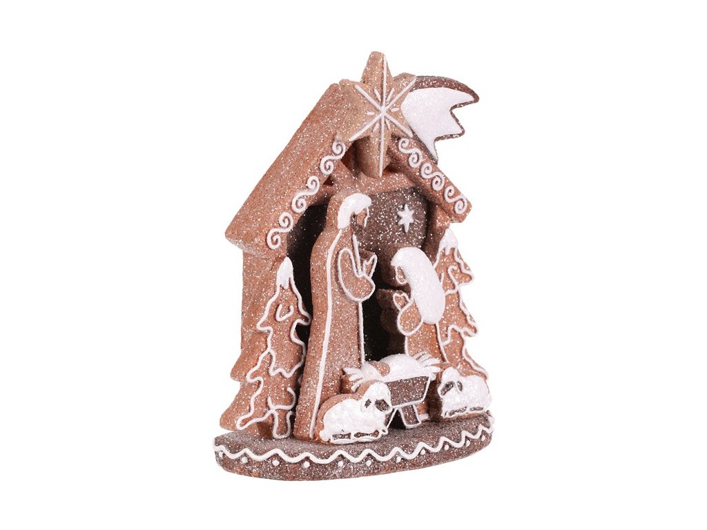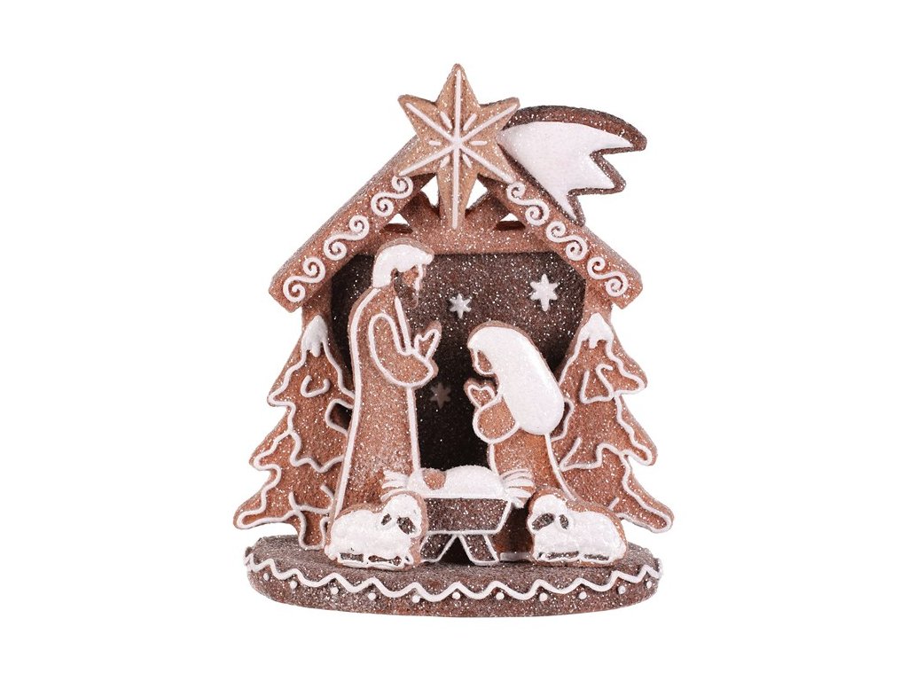 Perníkový betlém z polyresinu v hnědé barvě s bílým zdobením, který je vybaven LED osvětlením, vytváří neodolatelný světelný efekt, který okouzlí každého. Svým provedením přinese do vaší vánoční výzdoby hřejivou atmosféru, plnou klidu a pohody.