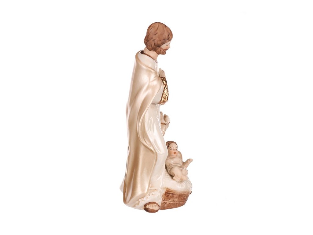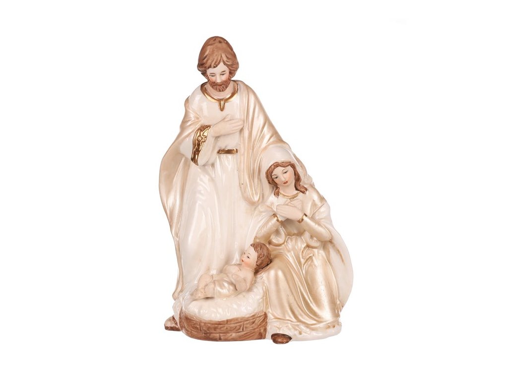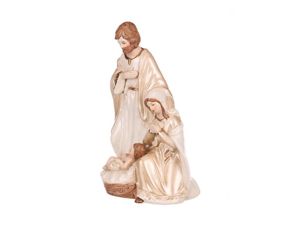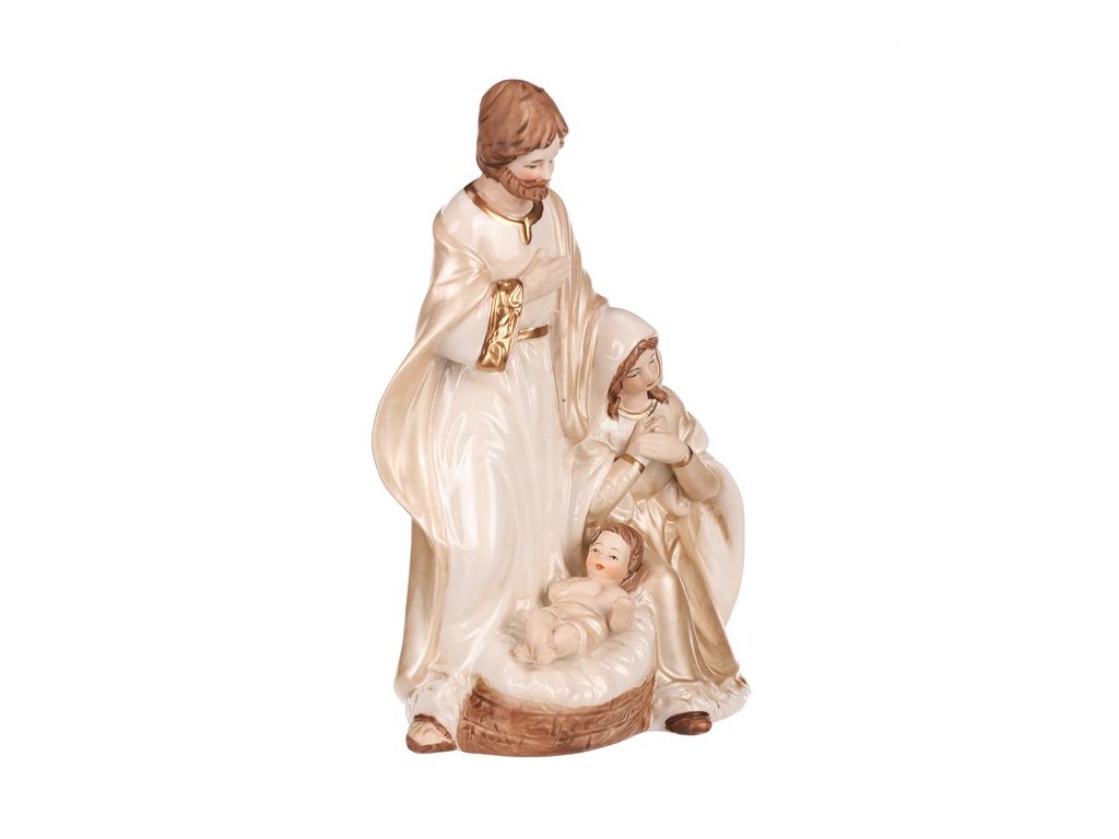 Přiveďte s příchodem svátků do svého domova výjimečnou dekoraci v podobě sošky Svaté rodiny s Ježíškem. Vyrobena z keramiky v kombinaci barev béžové a bílé, tato soška na postavení není pouze Vánoční ozdobou, ale také výjevem symbolizujícího momentu narození. S jemnými detaily a půvabným designem tato soška přináší do vašeho prostoru nezaměnitelný dotek klidu a vznešenosti, a nadchne každého, kdo ocení krásu tradičních Vánočních dekorací.