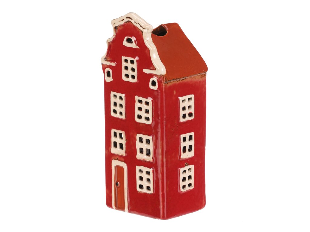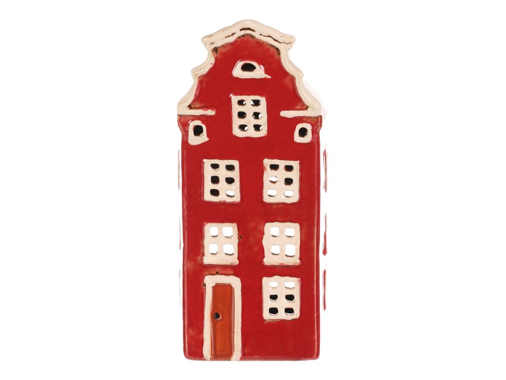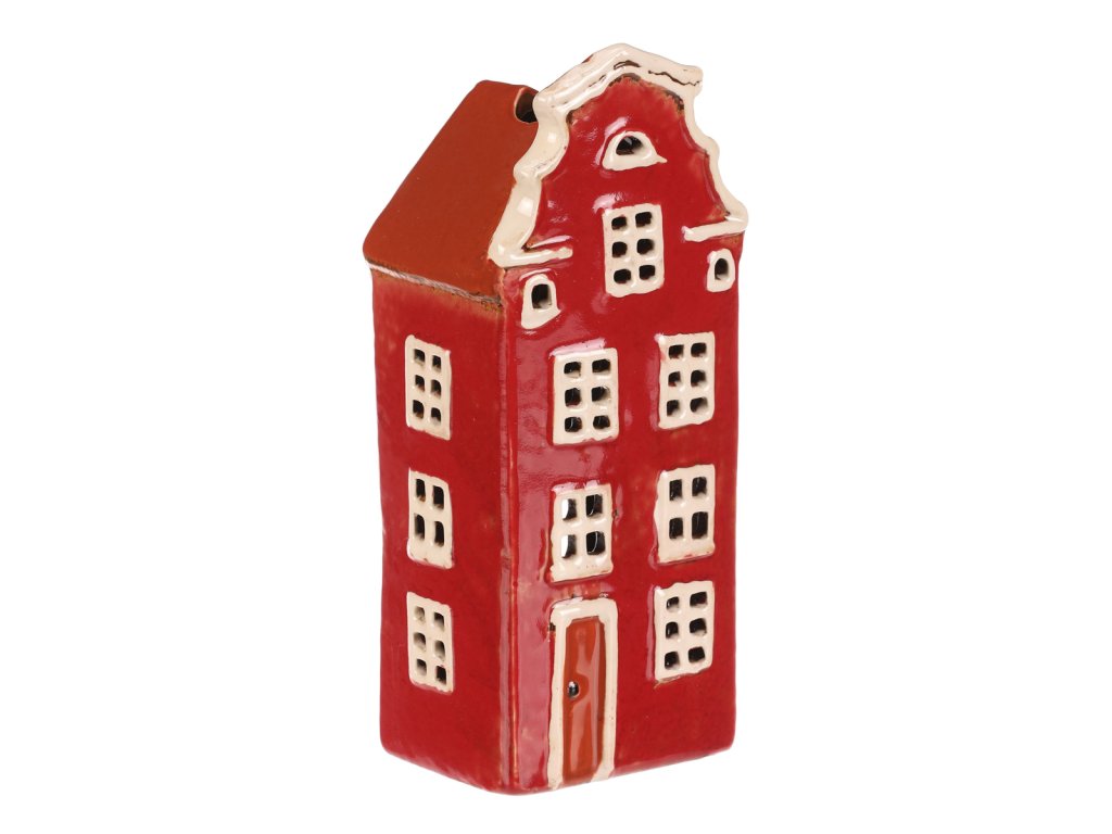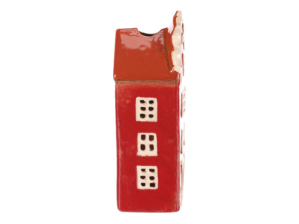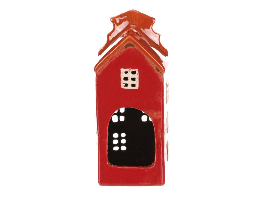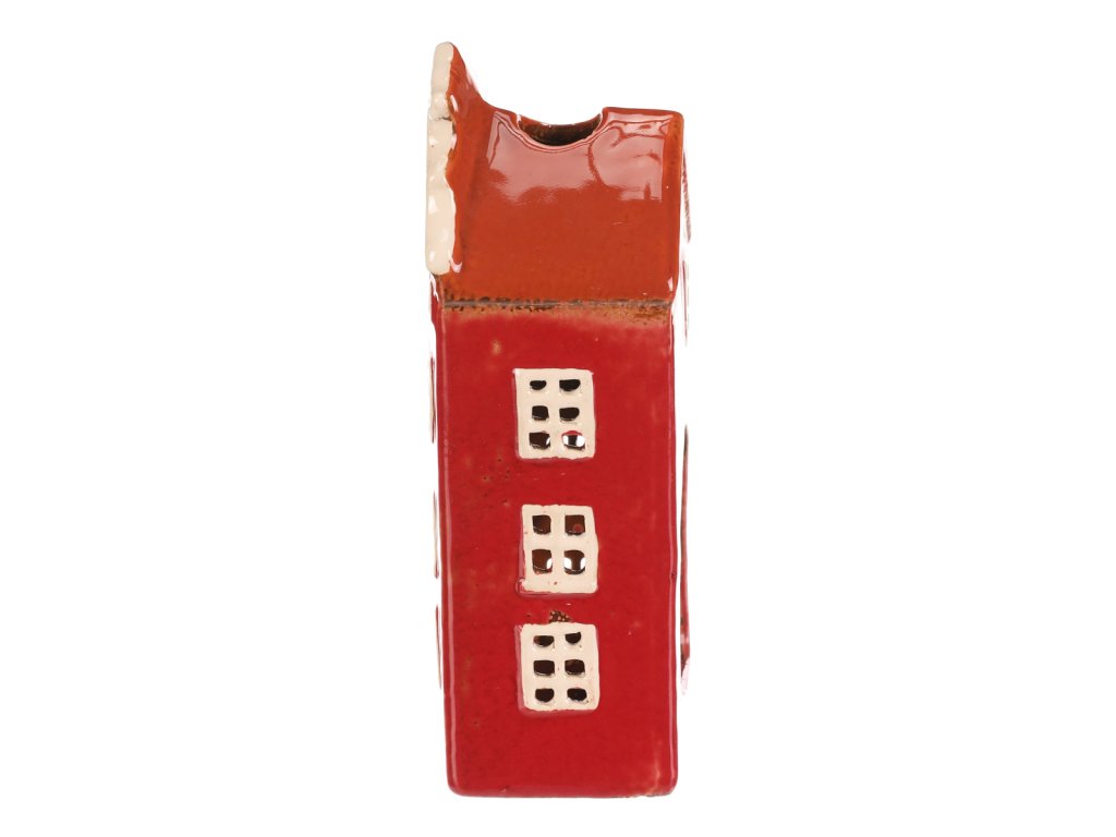 Keramický několikapatrový domek s červenou fasádou a střechou je jako vystřižený z malebného historického náměstí. Prostor na čajovou svíčku zajišťuje neodolatelný světelný efekt, kdy paprsky světla pronikají skrze všechna okénka. Ideální dekorace, která vnese do vašeho domova hřejivou a kouzelnou atmosféru.