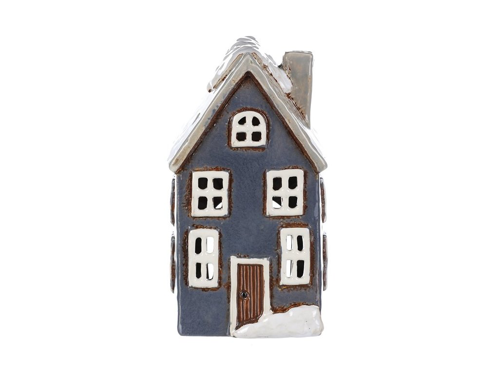Ozdobte si váš oblíbený prostor tímto kouzelným keramickým domečkem v šedé barvě, který jakoby se k vám dostal přímo z pohádkového města. Jeho malovaný vzhled s malebnými okénky vyniká sám o sobě a ještě k tomu nabízí prostor pro vložení čajové nebo LED svíčky. Tato dekorace je vhodná pro celoroční využití, přičemž její světelný efekt dosahuje nejlepších výsledků samozřejmě za tmy. Skrze okénka proniknou do vašeho prostoru neodolatelné světelné paprsky, které v něm navodí kouzelnou atmosféru.
