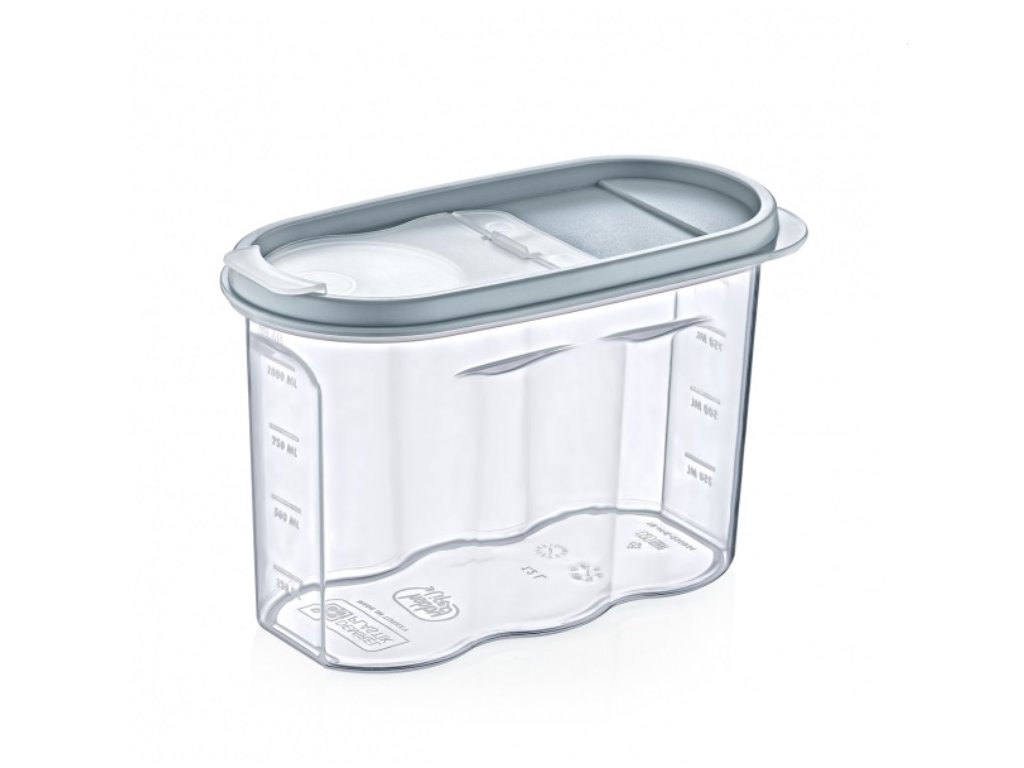 Plastovou dózu o objemu 1,2 l s dávkovacím uzávěrem oceníte zejména pro uskladnění těstovin, mouky, luštěnin nebo rýže či na jiné sypké potraviny.