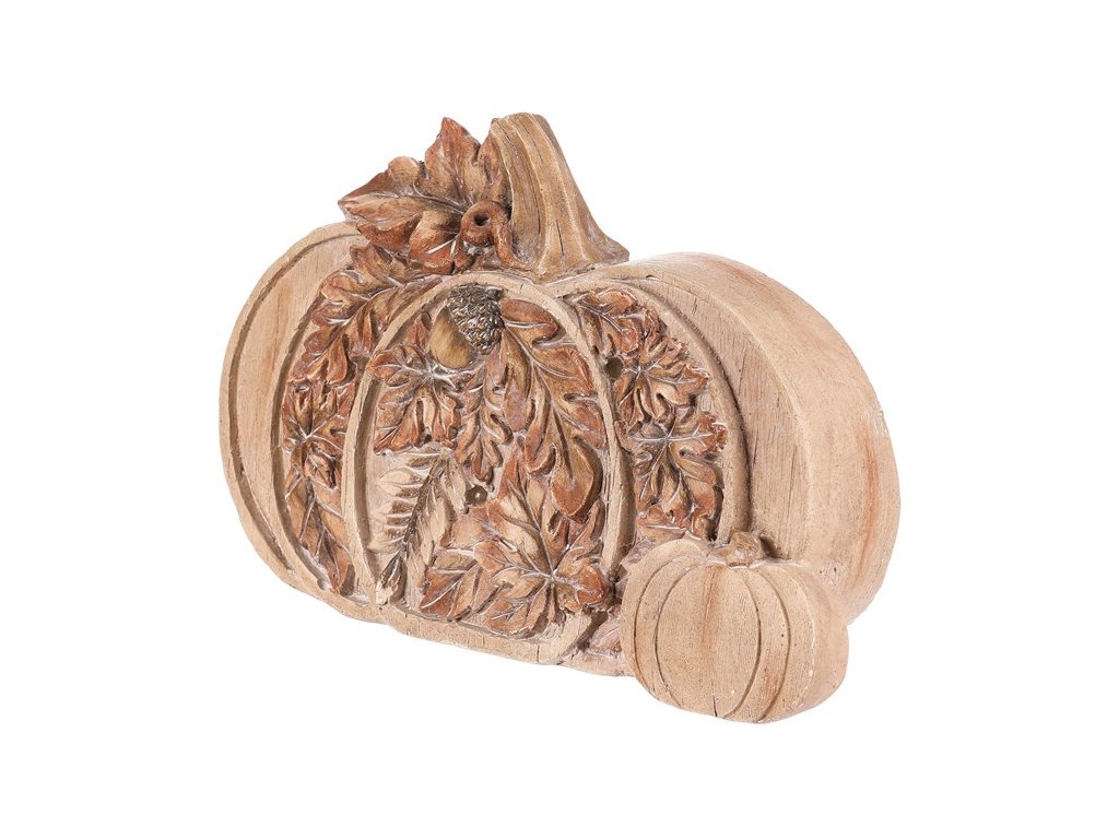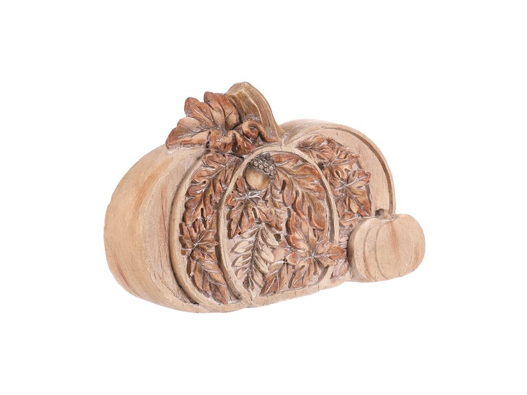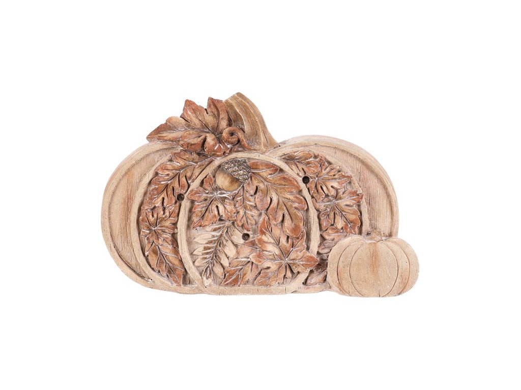 Dýně s osvětlením v imitaci dřeva a s podzimním listím se žaludem přináší do vaší zahrady kouzelnou podzimní atmosféru. Vyrobená je z magnesia, ale svým zpracováním skvěle zapadne mezi dřeviny a keře. Dekorace je vybavena osvětlením, díky kterému můžete rozsvítit vybrané místo, čímž vytvoříte zejména za temných večerů, skutečně tajemnou atmosféru. Tato dekorace je skvělou volbou pro zahradu, terasu, balkon, případně i stylovým prvkem vybraného místa v interiéru.