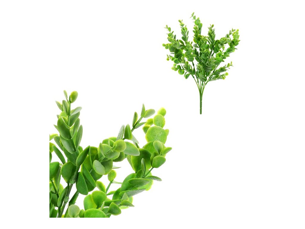 Svazek eukalyptových větévek, velmi věrný své přírodní předloze, je ideálním doplňkem do květinových vazeb a aranží. Každá větévka je bohatě opatřena drobnými kulatými lístky, které tvarem i barvou dobře kontrastují s květy nebo ostatní zelení.