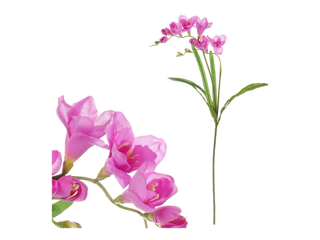 Umělá řezaná frézie s fialovými květy představuje věrohodnou kopii živé varianty v její nejkrásnější podobě. Tato trvanlivá květina nikdy neuvadne a přinese příjemné oživení do prostoru, a to po celý rok. S jejím vzhledem představujícím rostlinu v plném květu, je ideálním prvkem výzdoby, buď pro vaše osobní potěšení nebo jako svěží doplněk na různé oslavy a společenské události. Užívejte si nepřetržitou krásu umělé květiny bez starostí a péče o ni a využijte nesporných výhod, které nabízí.