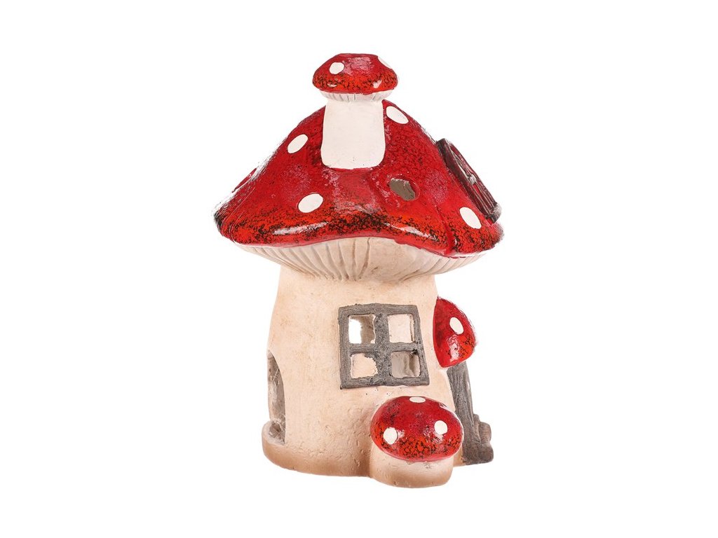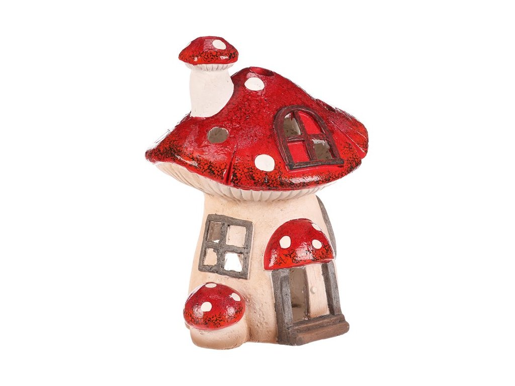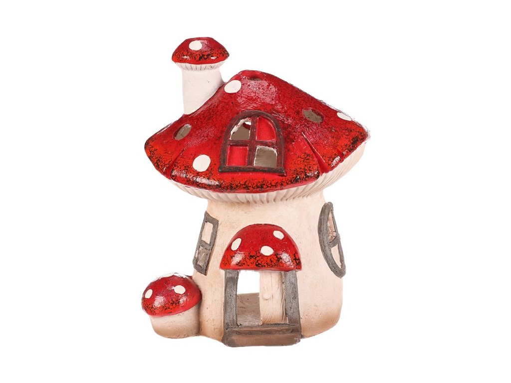 Houbový domeček z magnesia s LED osvětlením bude skvělou ozdobou pro podzimní období. Domeček je tvořen mochomůrkou červenou s krásně zbarvenou střechou. Jeho komínek je vtipně tvořen jednou mini mochomůrkou, a ještě jednu můžeme vidět hned vedle vchodu. Můžete si tak hravě vytvořit neodolatelné barevné zákoutí s možností vytvořit příjemné světlo během tmavých podzimních večerů.