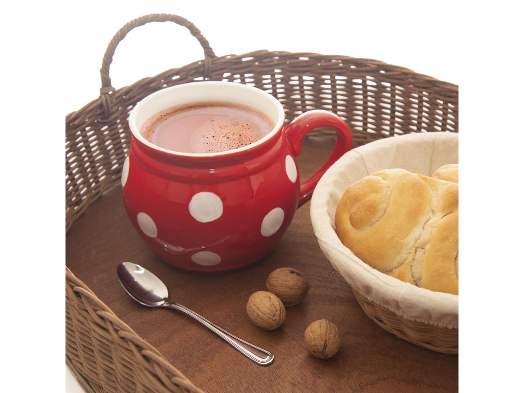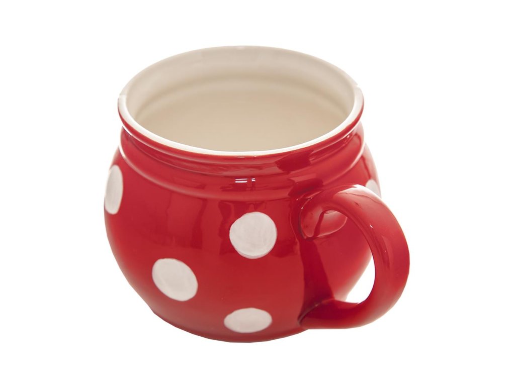 Tento keramický obr - hrnek KRAJÁČ o objemu 1 l. Spojení červené barvy a bílých puntíků mu dodává nádech dob minulých, díky čemuž je hrnek i krásnou dekorací nejen do interiéru venkovských chalup, ale i moderních kuchyní.