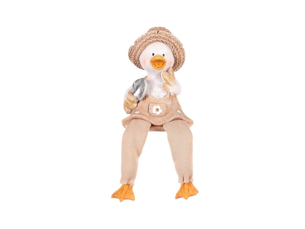Tyto veselé kachny se slaměnými kloboučky a visícíma nohama dodají vaší zahradě nebo terase špetku humoru a stylu. V mixu dvou druhů, jedna kachna drží konev a druhá lopatku, obě jsou oblečeny v zahradnickém stylu a připraveny přivítat každého návštěvníka s úsměvem.