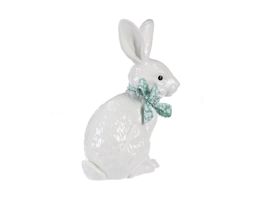 Dodejte svému domovu nádech elegance a něžnosti s tímto keramickým zajíčkem. Figurku zdobí lesklý bílý povrch, který krásně odráží světlo, a jemná látková mašle s květinovým vzorem dodává dekoraci romantický nádech. Tento zajíček je ideální jako velikonoční dekorace, ale díky svému univerzálnímu designu se hodí i jako celoroční ozdoba do moderních i rustikálních interiérů. Perfektní na poličku, komodu či jako součást svátečního aranžmá. Skvělý tip na dárek pro milovníky stylových doplňků!
