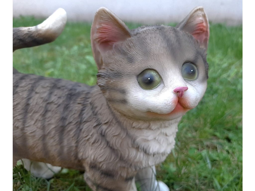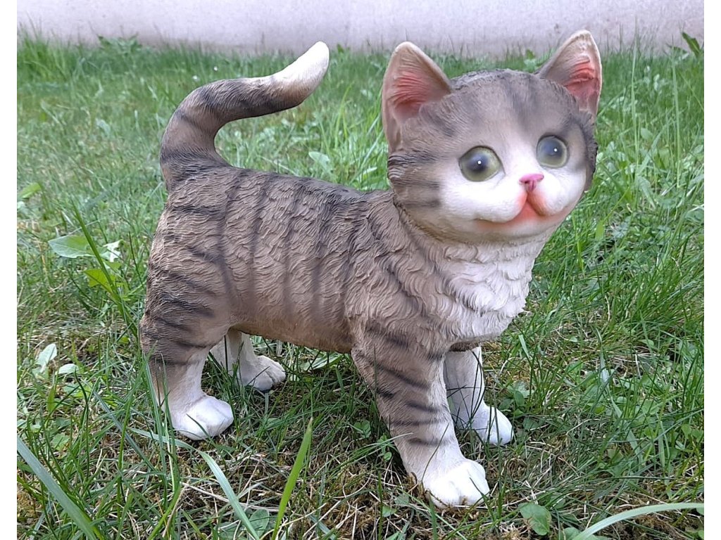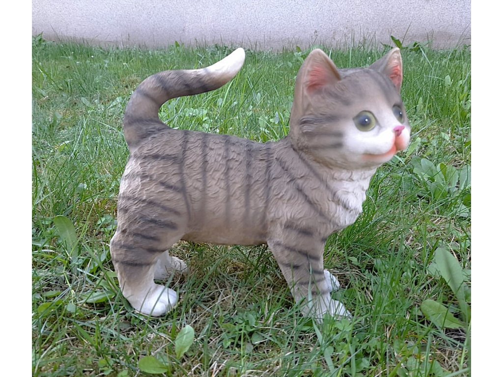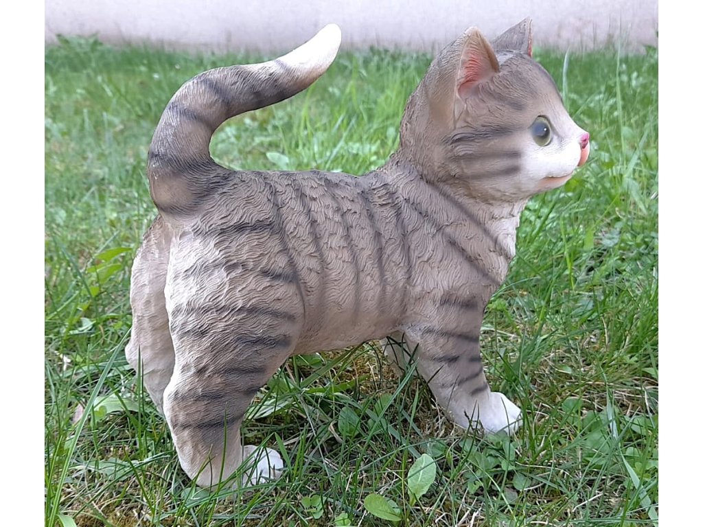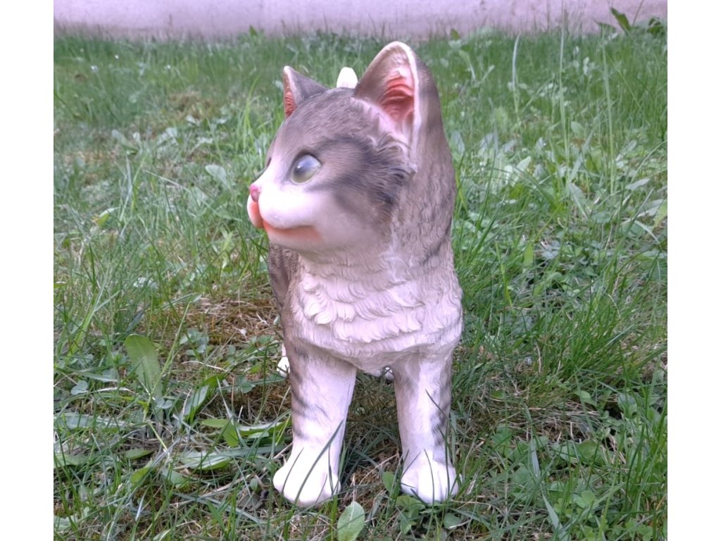 Kočka stojící šedá