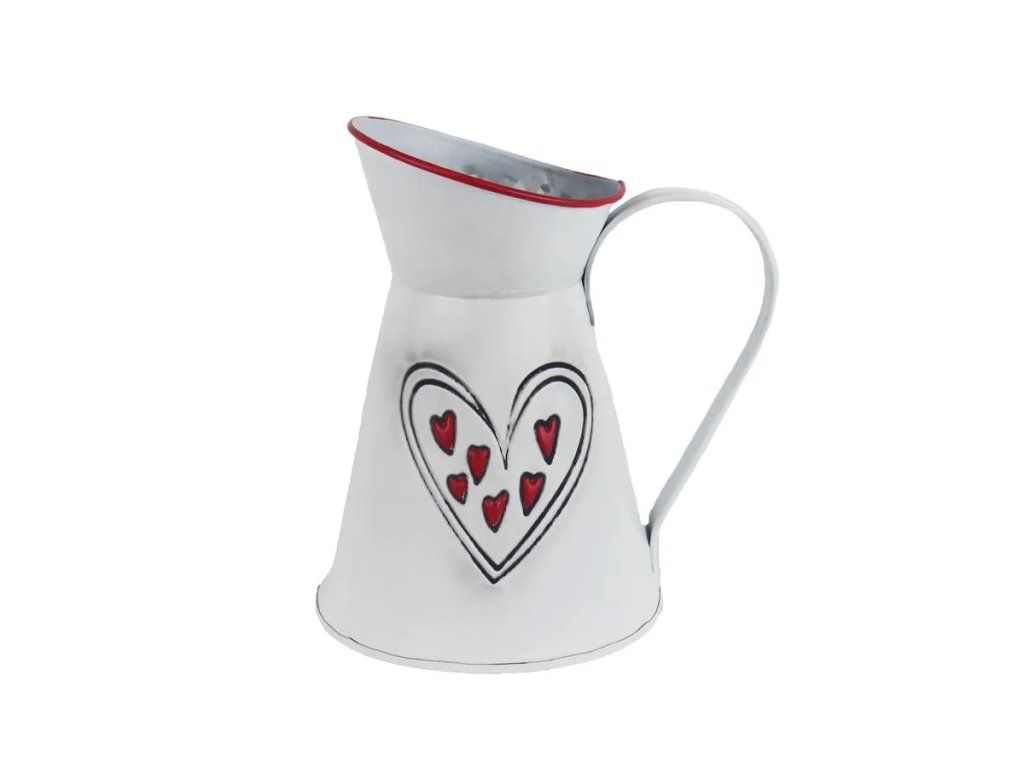 Rozměry: 10,5 x 18 x 20 cm.Materiál: kov.Barva: bílá.Tento výrobek je vyrobený ručně, tudíž nemusí být 100% vodotěsný.