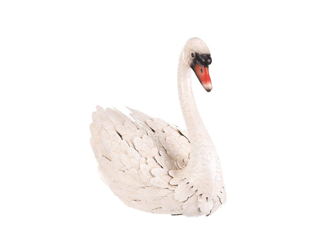 Zahradní dekorace ve tvaru labutě je vyrobena z kovu v bílém odstínu, který vytváří jemný a přirozený vizuální efekt. Detailní zpracování peří a elegantní zakřivení krku dodávají dekoraci realistický vzhled. Velikost L umožňuje výrazné umístění v zahradě, na terase nebo v interiéru. Dekorace je určena k postavení a díky pevnému kovovému provedení je stabilní a vhodná pro dlouhodobé venkovní použití. Vynikne jako stylový doplněk, který přináší klidnou atmosféru a přírodní motiv do prostoru.