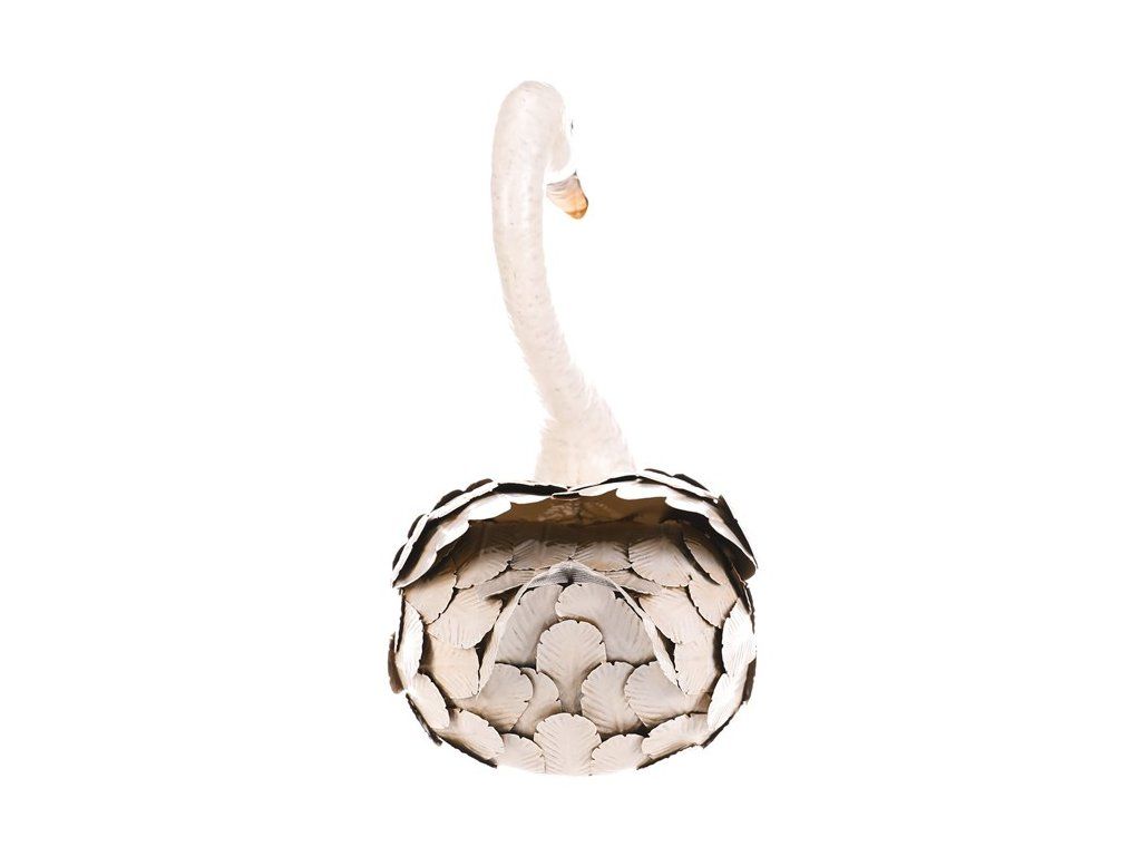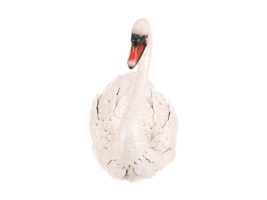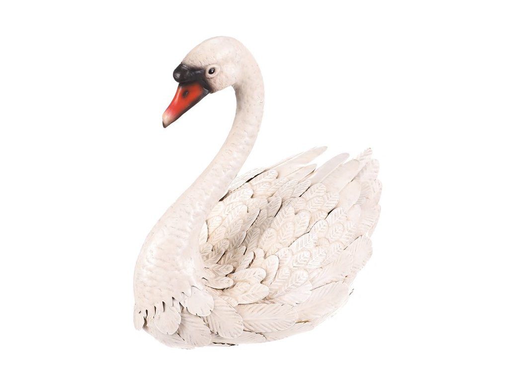 Zahradní dekorace ve tvaru labutě je vyrobena z kovu v bílém odstínu, který věrně napodobuje peří díky detailnímu zpracování jednotlivých „per“. Je určena k postavení a vynikne jako elegantní doplněk zahradních prostorů, teras či vstupních částí. Její pevné provedení zajišťuje stabilitu a dlouhou životnost i při venkovním použití. Velikost M umožňuje snadné umístění na různá místa bez zbytečné náročnosti na prostor. Dekorace přináší do exteriéru vizuální efekt připomínající skutečnou labuť, čímž dodává prostředí přírodní atmosféru.