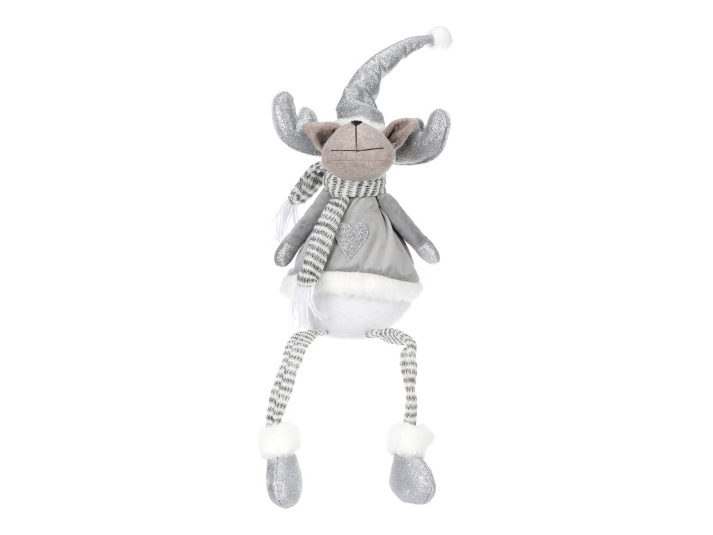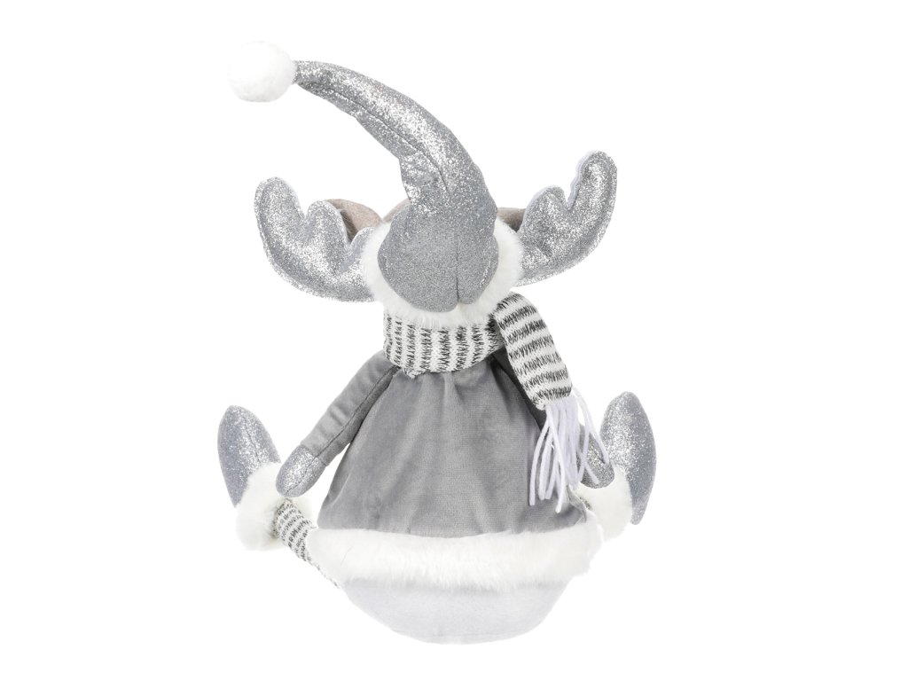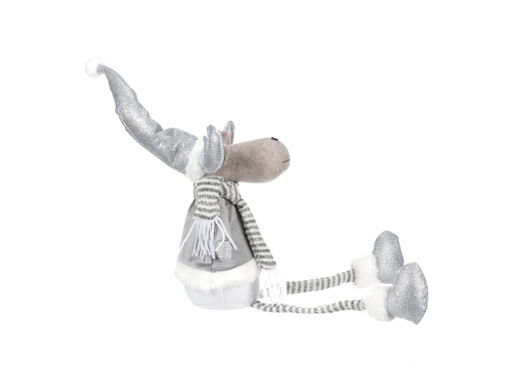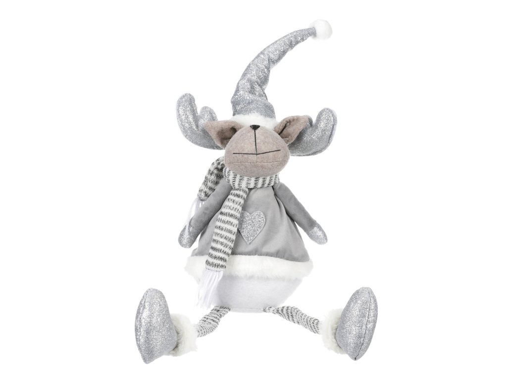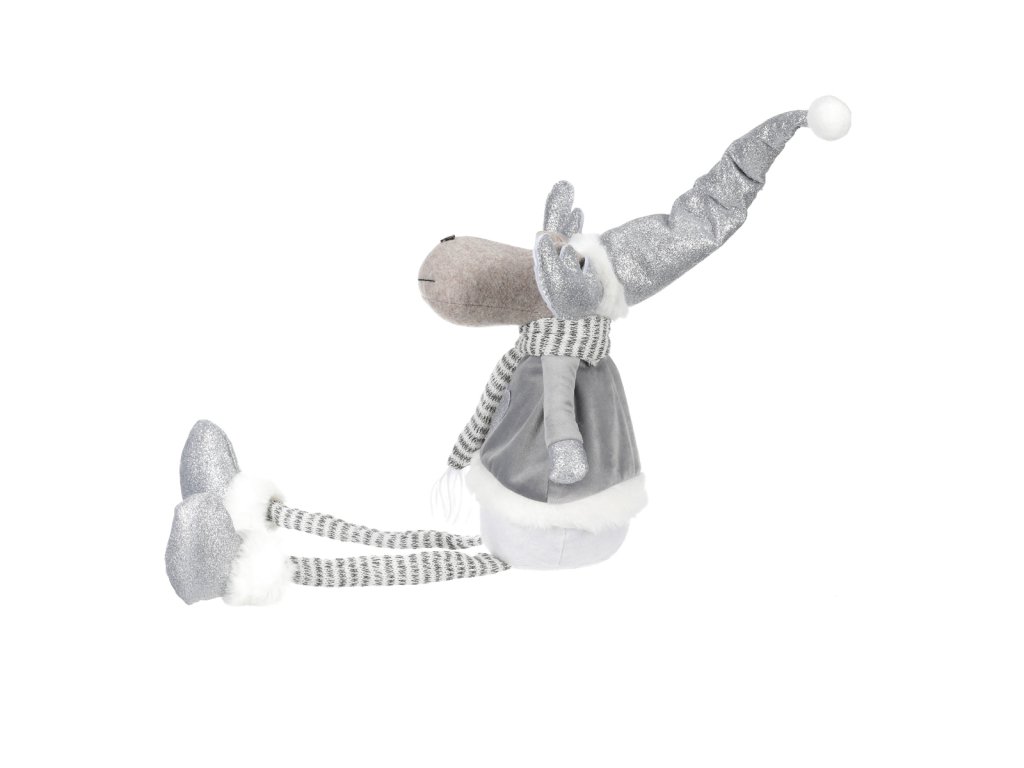Tento okouzlující látkový sob je skvělým neživým společníkem do vašeho domova obzvláště během vánočních svátků. Jeho hravá podoba dovede každého okamžitě vtáhnou do sváteční nálady a pohody. Obléknutý v teplém zimním oblečení se šálou kolem krku a teplou špičatou čepicí na hlavě, působí dojmem, že akorát teď přijel za vámi z mrazivého severu. Jeho široký úsměv a rozverná očka nám sdělují, že nám chce předat svou dobrou náladu a radost. Jeho dlouhé tenké visící nožky a robustní teplé boty mu dodávají komický vzhled, který zaručeně vyvolá úsměv na tváři každého, kdo jej uvidí. Sob, zvíře spojené se severskou zimou, přináší v tomto provedení do vašeho interiéru nejen estetickou hodnotu, ale i veselého parťáka. Rozveselí vás všechny, včetně všech hostů a návštěvníků, svým neodolatelným vzhledem a nakažlivým humorem.