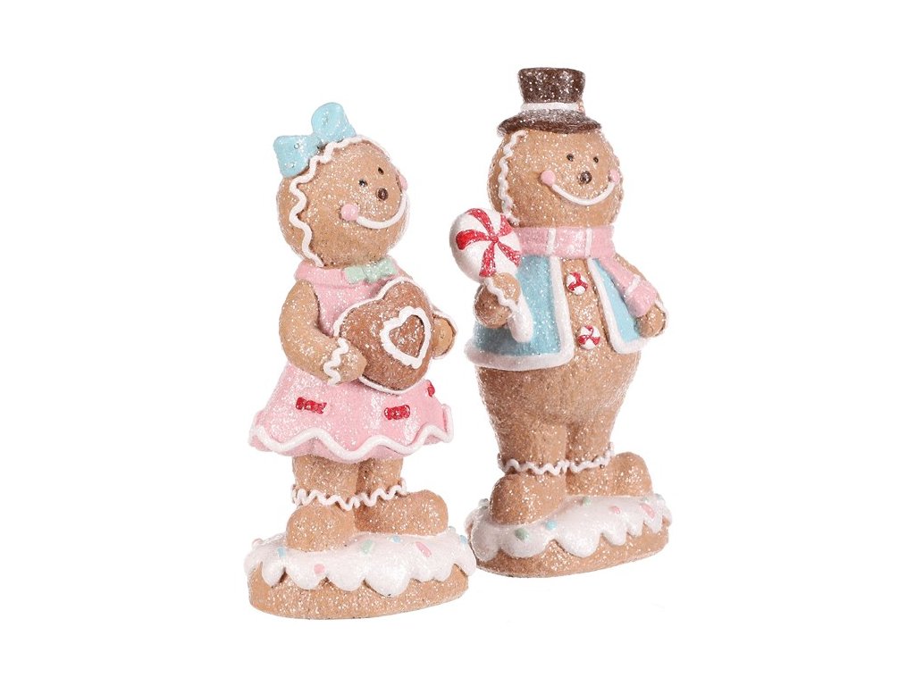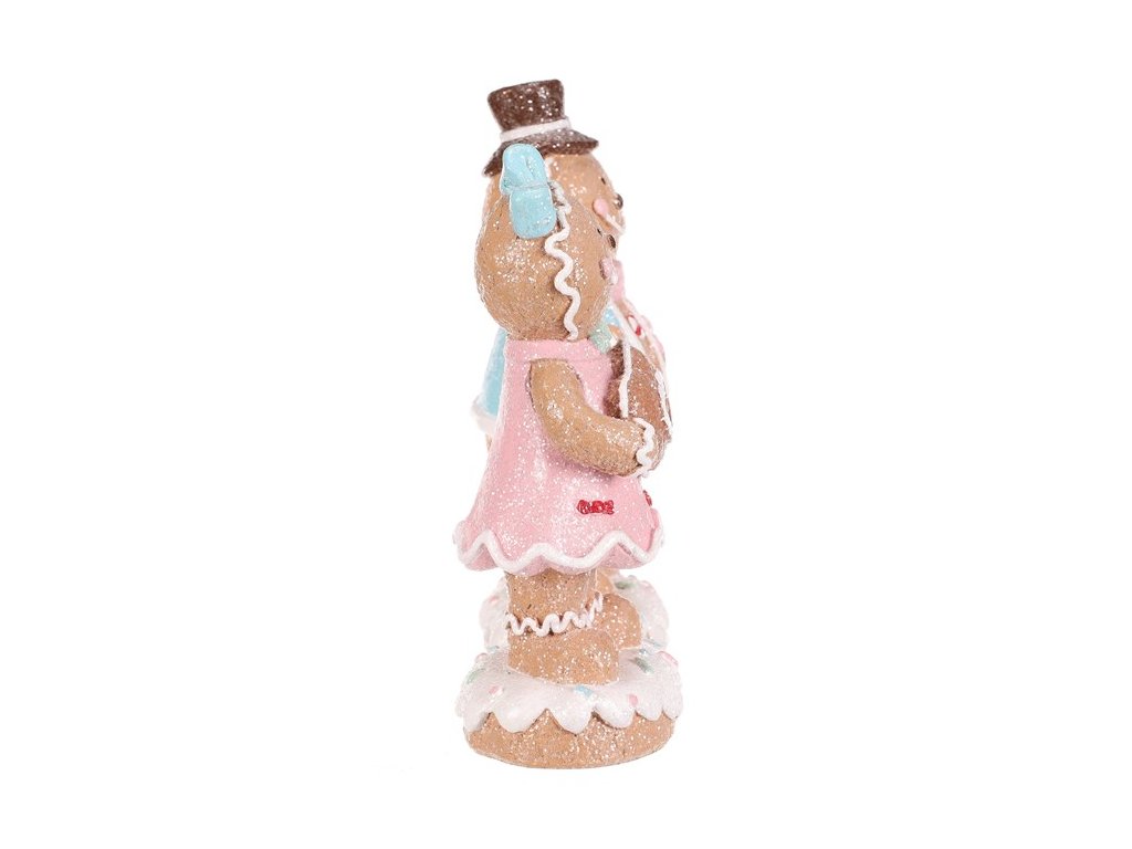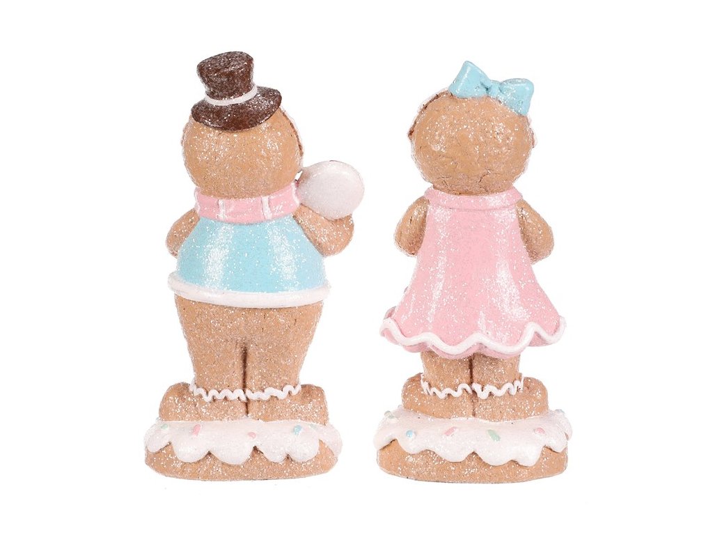 Perníkový panáček z polyresinu v pestrobarevném provedení přináší do vaší vánoční výzdoby hravý a veselý nádech. Mix dvou druhů – holčička v růžových šatech a chlapeček s vestou a kloboukem – je perfektní volbou pro rozjasnění vašeho domova ve svátečním čase.