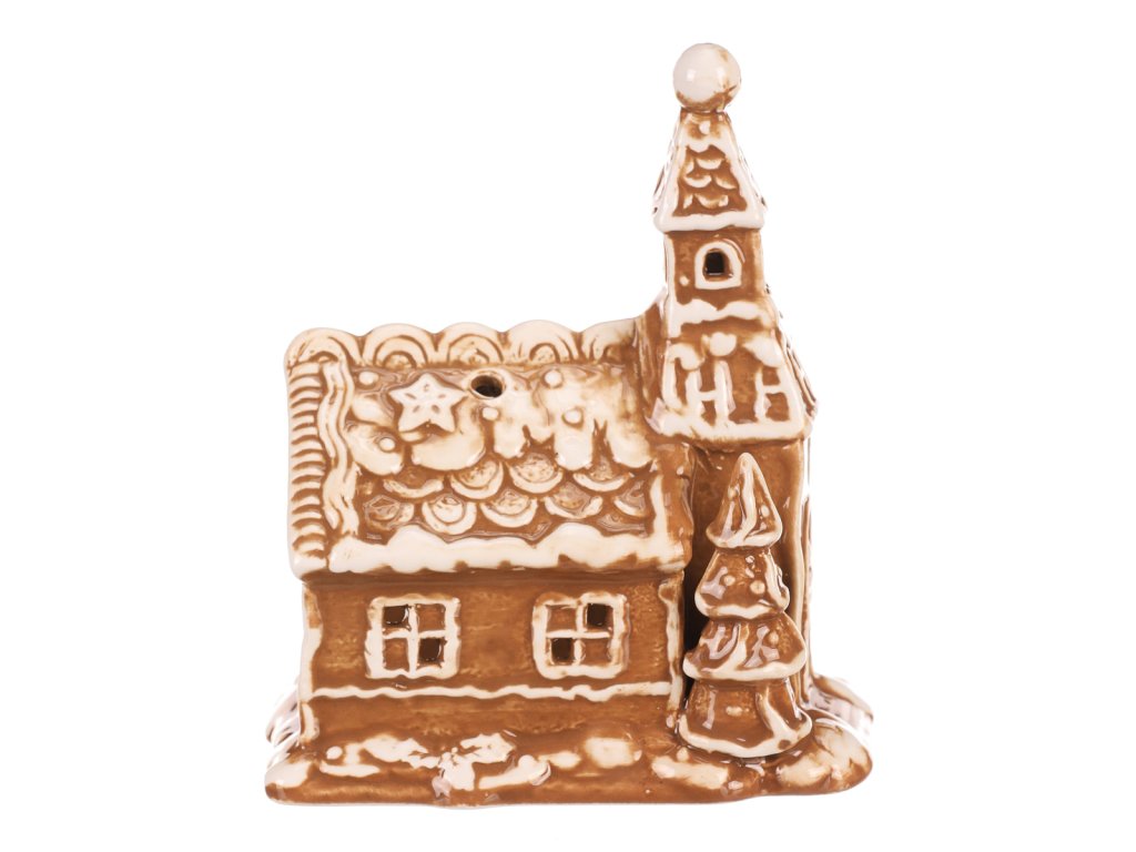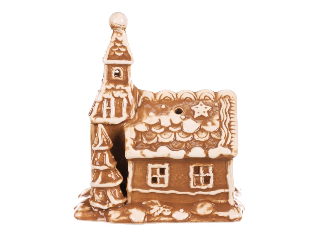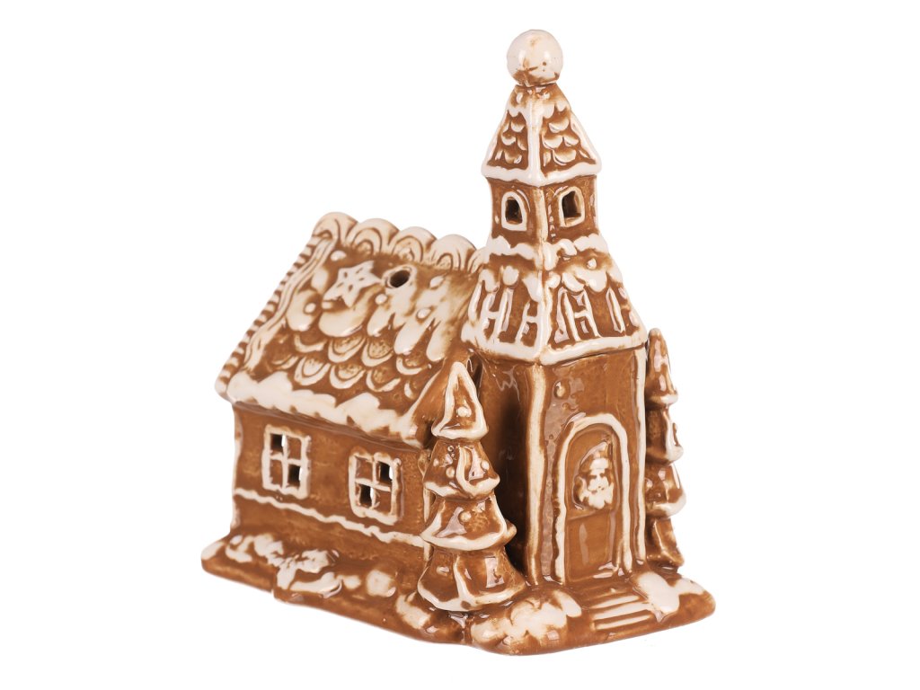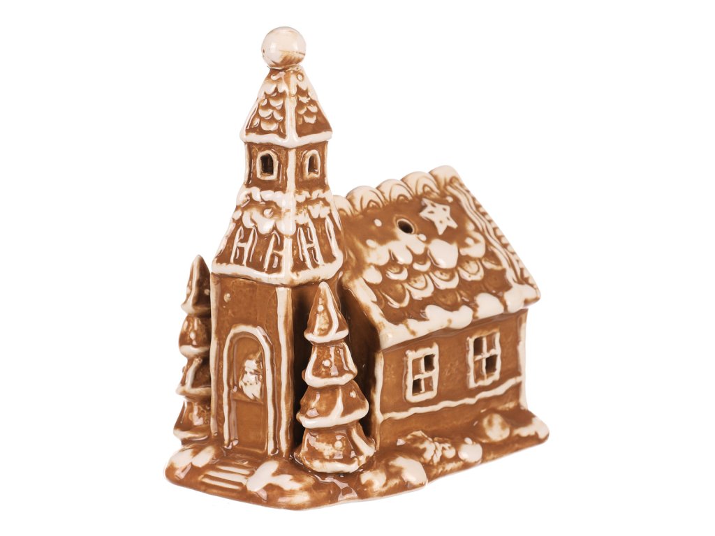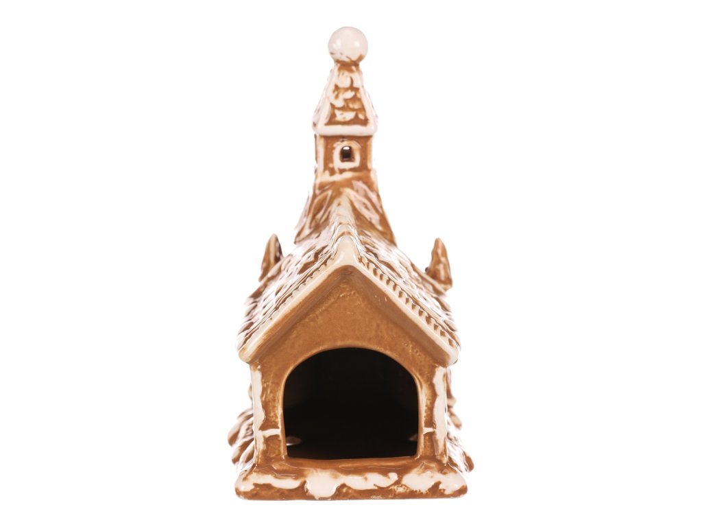 Oživte vánoční atmosféru s tímto pohádkovým perníkovým kostelíkem z keramiky. V hnědé barvě s bílými lemy a zdobením, má tento zasněžený kostelík navíc prostor pro vložení čajové či LED svíčky, což vám dodá úžasný světelný efekt. Vypadá, jako by byl upečený z perníku, což mu přidává na jedinečnosti a kouzelném vzhledu. S výjimečným designem a keramickým zpracováním se jedná o perfektní vánoční ozdobu pro vytvoření hřejivé a magické atmosféry u vás doma.