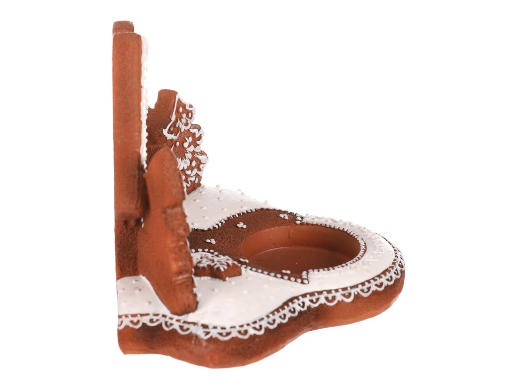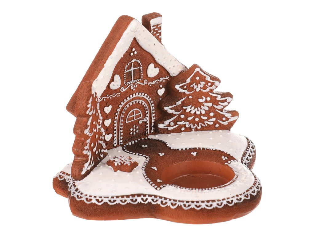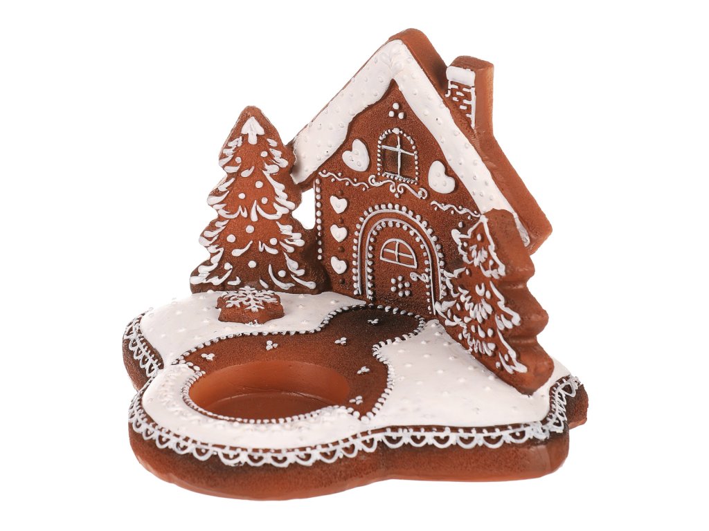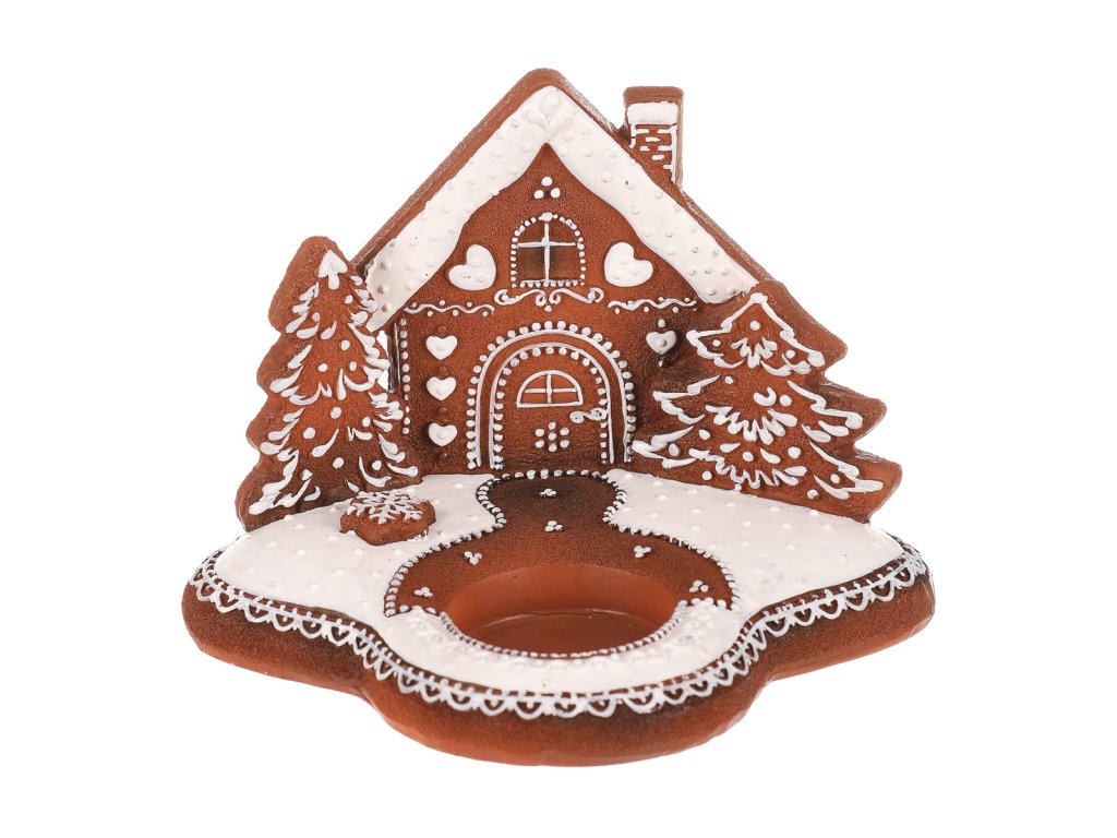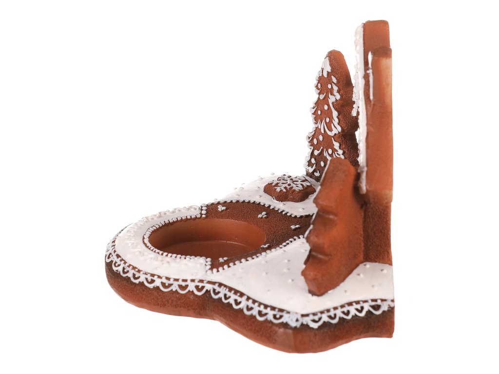 | Oživte své sváteční dekorace s naším perníkovým svícnem. Je na něm vyobrazená chaloupka a stromečky, přičemž celý je vyroben z polyresinu a přináší kouzlo vánoční atmosféry do vašeho domova. Jeho hnědá barva charakterizuje a věrně napodobuje perníkový základ, zatímco bílá barva znázorňuje sníh. Svícen má v přední části kalíšek, který působí jako takový malý bazének, pro umístění čajové nebo LED svíčky, abyste si mohli vaše svátky rozzářit plamínkem svíčky naplno. |
