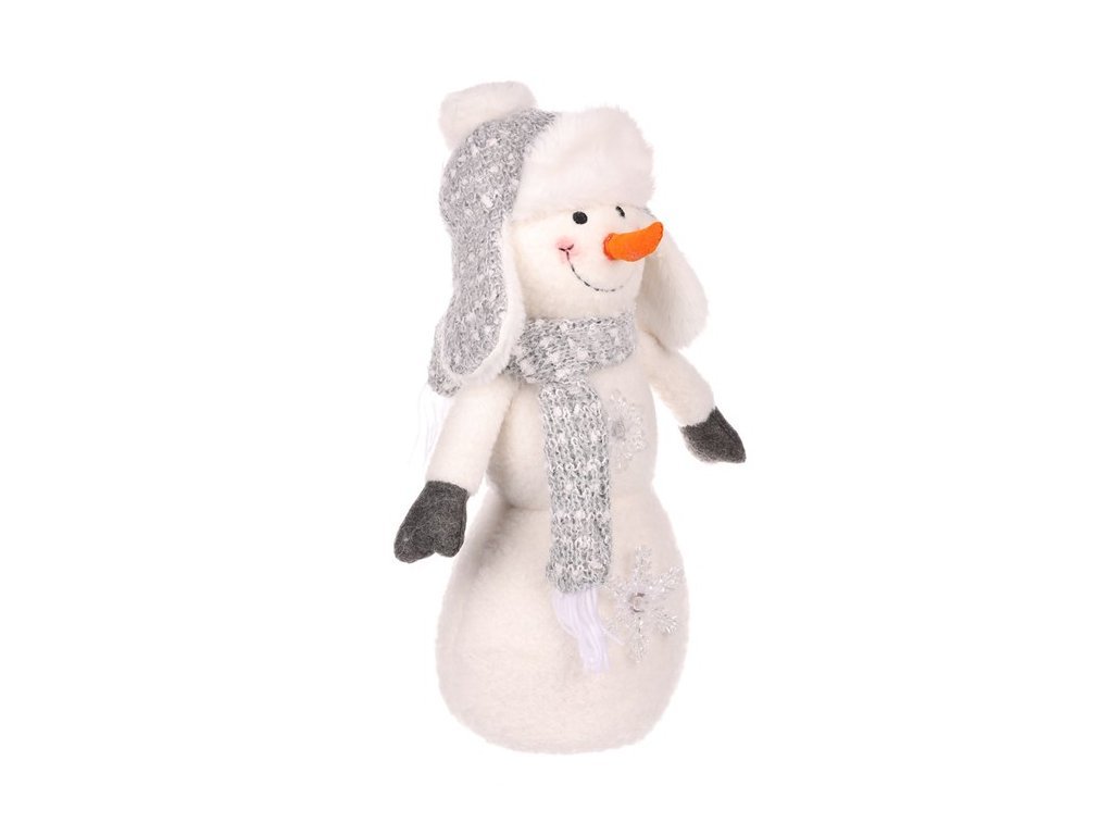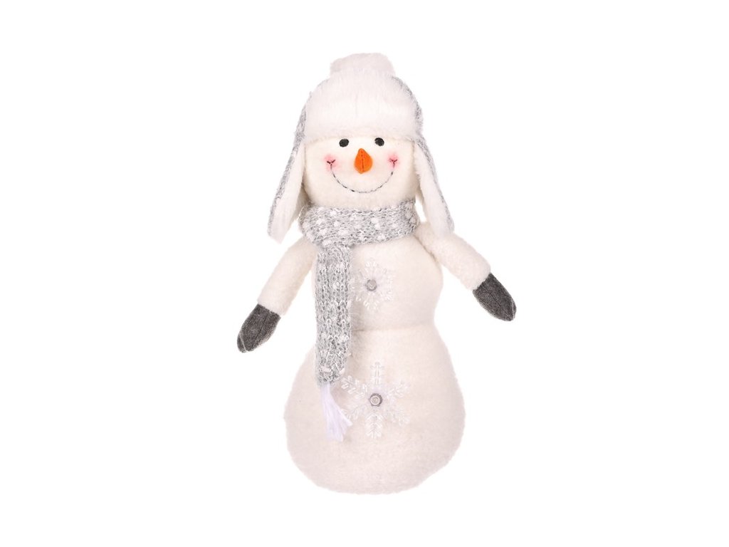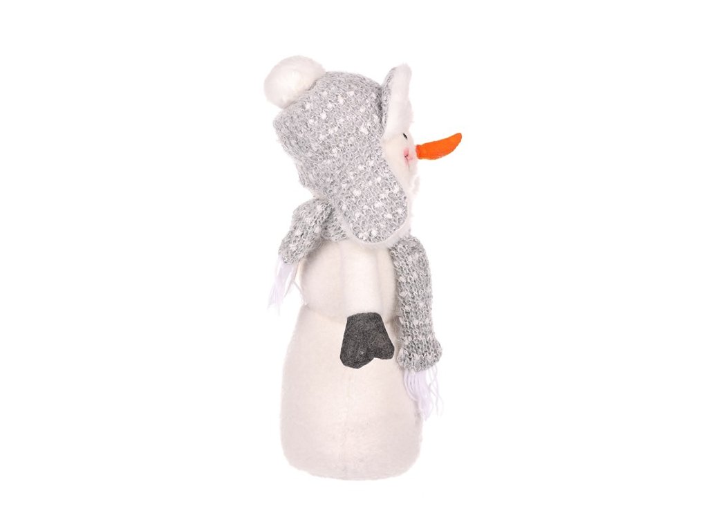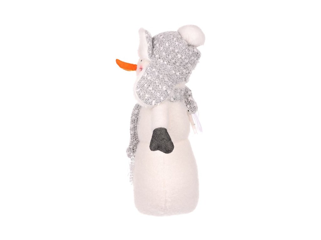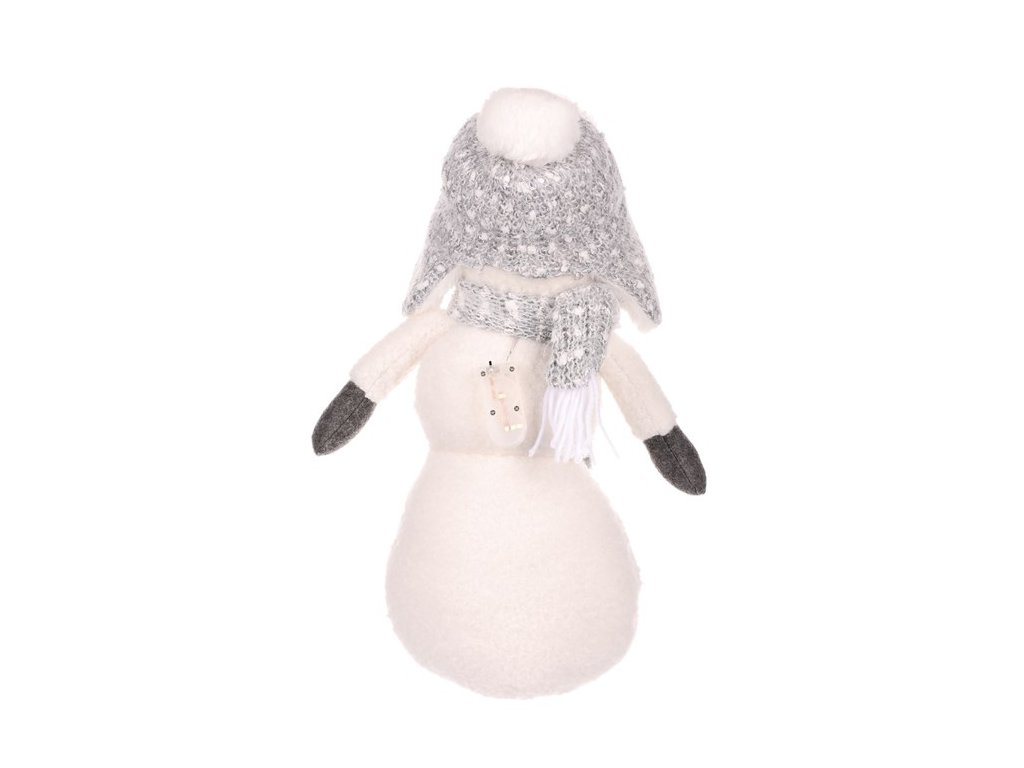Veselý látkový sněhulák s LED osvětlením na knoflících, okamžitě přidá do vašeho interiéru pohodu, radost a kouzlo Vánoc. Sněhulák má úsměv od ucha k uchu a jeho typický nos z mrkve z něj dělá postavičku, která rozdává radost všemi směry. Je chytrý, a místo klasického hrnce na hlavě, nosí teplou čepku ve formě beranice, která ho chrání před zimním chladem. Nezapomněl si vzít ani šálu, která mu bude zahřívat jeho ledový krk. Jen jeho nekryté červené tváře jsou ošlehané mrazem, což nám všem hned připomene, že je opravdu zima. Jeho knoflíky jsou osvíceny LED světélky ve tvaru hvězdiček připomínající sněhové vločky, které dodávají celému prostoru kouzelný světelný efekt. Tento sněhulák je nejen krásnou vánoční ozdobou, ale i skvělým způsobem, jak vytvořit v místnosti pravou vánoční atmosféru.