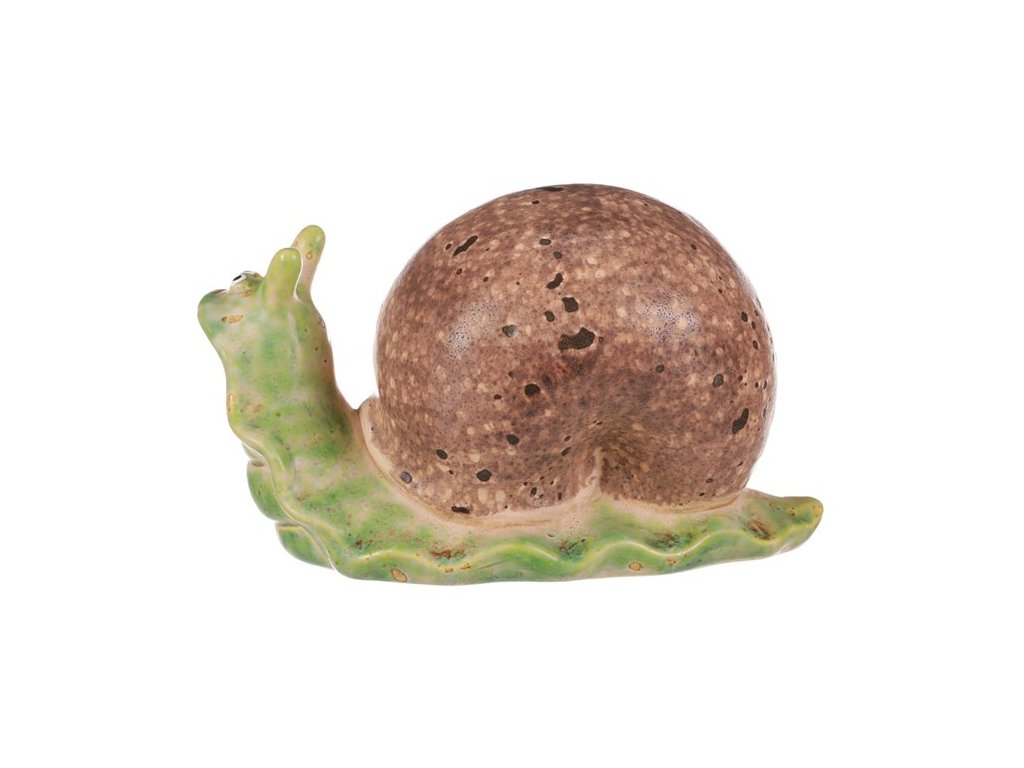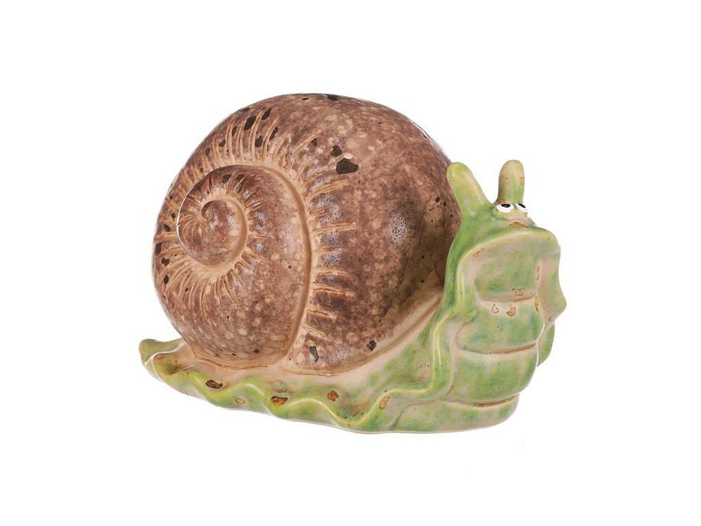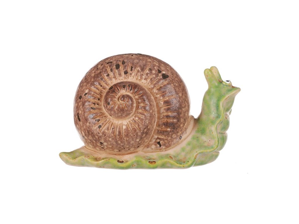 Přineste do své zahrady dávku radosti a hravosti s naší keramickou ozdobou ve formě šneka. Jeho provedení a veselé vyjádření zvednou náladu nejen vám, ale i všem návštěvníkům vaší zahrady. A co je skvělé, tento šnek vám určitě úrodu nepožere. Na rozdíl od svých přírodních protějšků se bude starat pouze o to, aby vás potěšil svým neodolatelným vzhledem. Oživte zahradu touto unikátní dekorací, která vám bude připomínat, že váš venkovní prostor může být místem nejen krásných rostlin, ale i vesele ztvárněných živočichů.