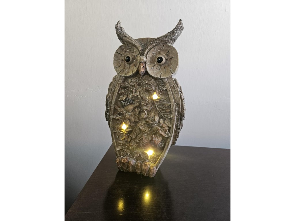 Sova - dekorace s osvětlením, imitace dřeva, magnesium