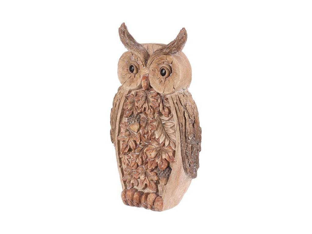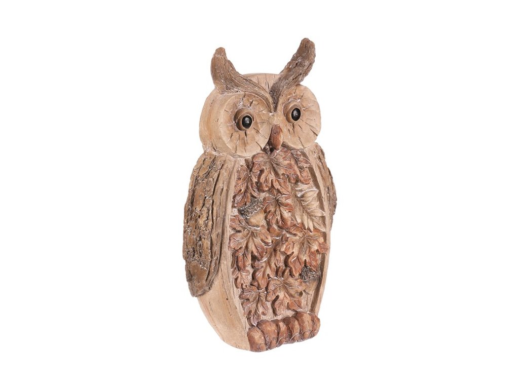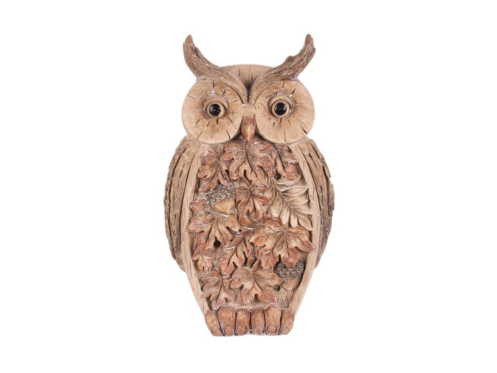Sova s osvětlením v imitaci dřeva a s podzimním listím přináší do vaší zahrady kouzelnou podzimní atmosféru. Vyrobená je z magnesia, ale svým zpracováním skvěle zapadne mezi dřeviny a keře. Dekorace je vybavena osvětlením, díky kterému můžete rozsvítit vybrané místo, čímž vytvoříte zejména za temných večerů, skutečně tajemnou atmosféru. Tato sova je skvělou volbou pro zahradu, terasu, balkon, případně i stylovým prvkem vybraného místa v interiéru.
