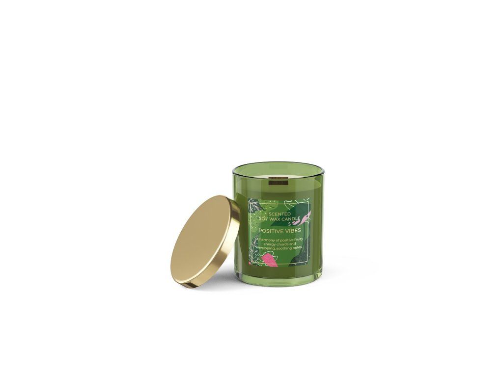 Svíčka ve skle s víčkem 220 g - POSITIVE VIBES (dřevěný knot)