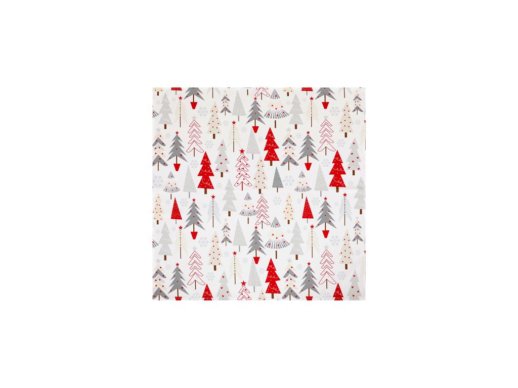 | Prostřete si váš sváteční stůl tímto nádherným ubrusem, který dodá vašemu interiéru úžasný vánoční nádech. Je ze 100% polyesteru a jeho rozměry jsou 80 x 80 cm. S motivem stromečků v šedých a červených odstínech s různými vzory, to vše na bílém základu, bude skvělým doplňkem svátečně laděného prostoru. |