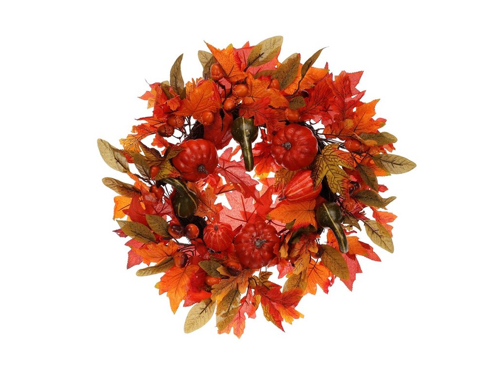 Umělý věnec plný barevného listí, dýní, plodů a květů rozzáří váš domov teplými tóny podzimu. Skvěle se hodí na dveře, stěnu i okno a přinese do prostoru nádherné barvy. Jeho nespornou výhodou je trvanlivost, díky které jej můžete používat ve stejné kráse i v dalších sezónách.