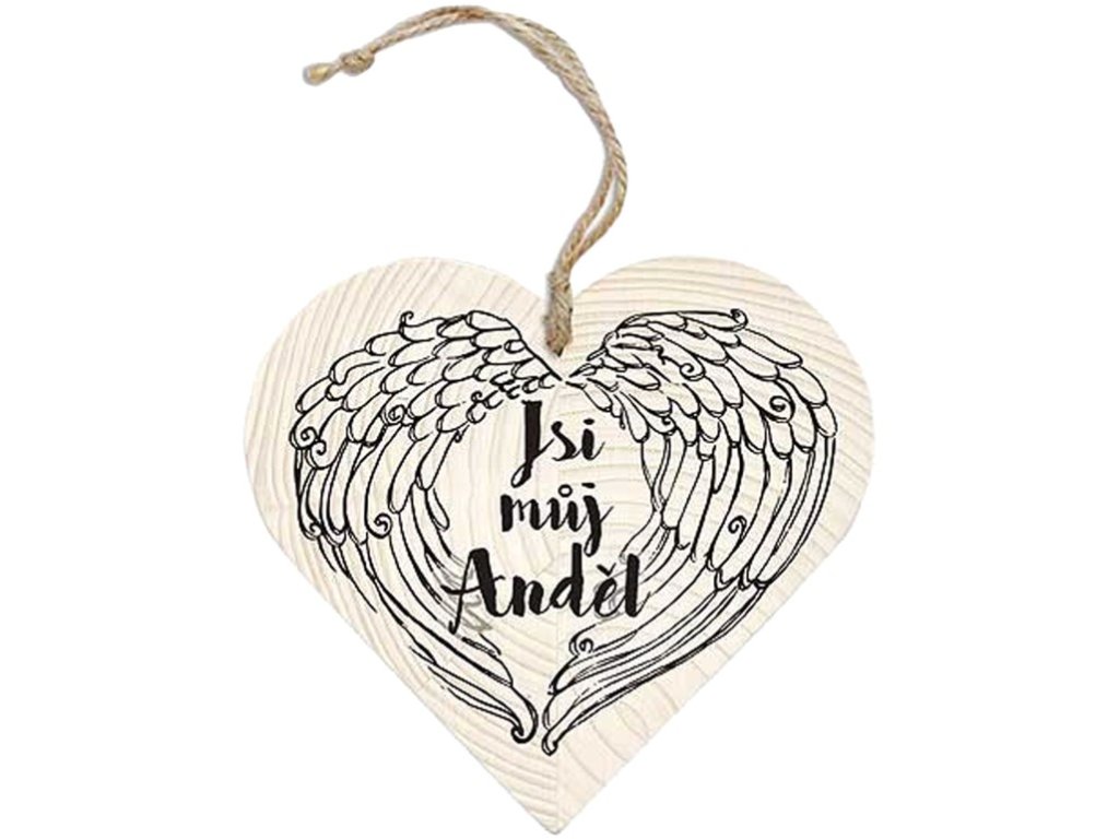 Dřevěné dekorační srdce k zavěšení – Jsi můj anděl. Šířka 120 mm, tloušťka 10 mm. Dřevěná vánoční dekorace k ozdobení vašeho domu, bytu nebo chalupy.