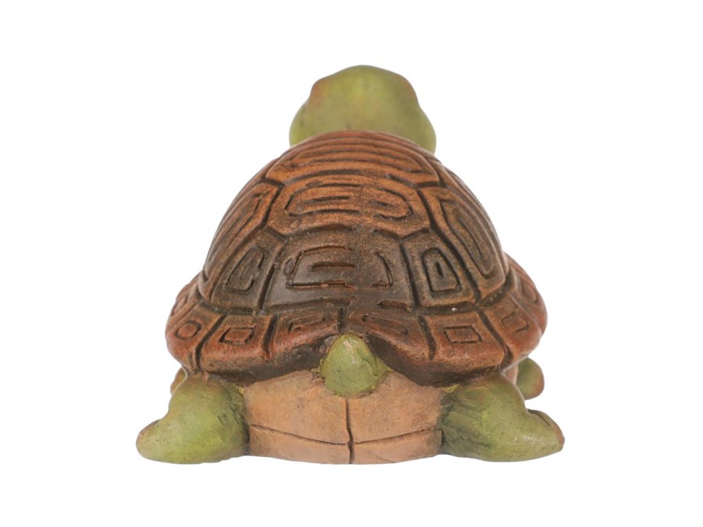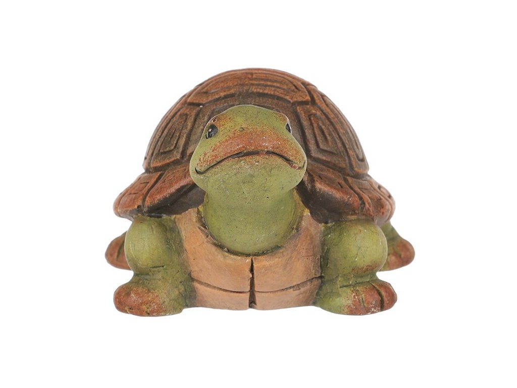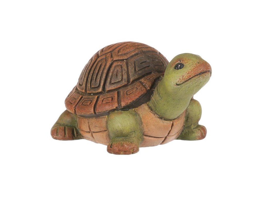 Keramická figurka želvy bude úžasným oživením vaší zahrady, terasy, pergoly nebo jiného vhodného prostoru. Její příjemný barevný design laděný do odstínů zelené (tělo želvy) a hnědé (krunýř) zajišťuje, že vaše zahrada získá příjemný dekorativní prvek, který dokonale splyne s prostředím. Želva svým milým provedením upoutá pozornost a přinese do prostoru veselejší atmosféru. Ať už ji postavíte mezi květiny, na trávník nebo na viditelné místo terasy, bude vždy vypadat skvěle. Právě veselý a hravý výraz této zvířecí sošky bude inspirací pro vás i všechny návštěvníky pro vytvoření místa se skutečně pozitivní atmosférou.